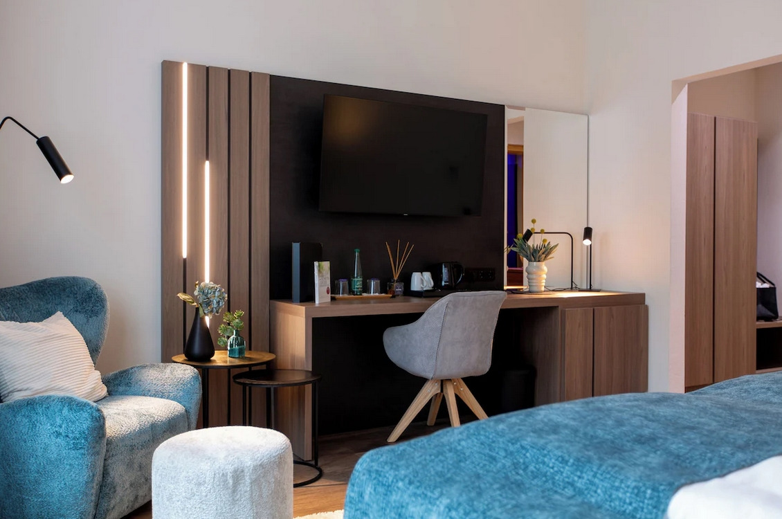 Renovierung des gesamten Hotels in mehreren Etappen (über 50 Zimmer) und des Frühstücksraums. Langlebige und optisch ansprechende Möbel in mehreren Varianten nach unserem Entwurf.